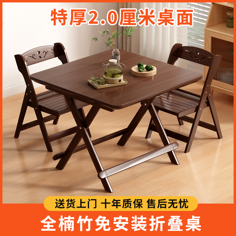 可折叠桌子餐桌家用小桌子户外便携简约小户型出租房木头吃饭方桌
