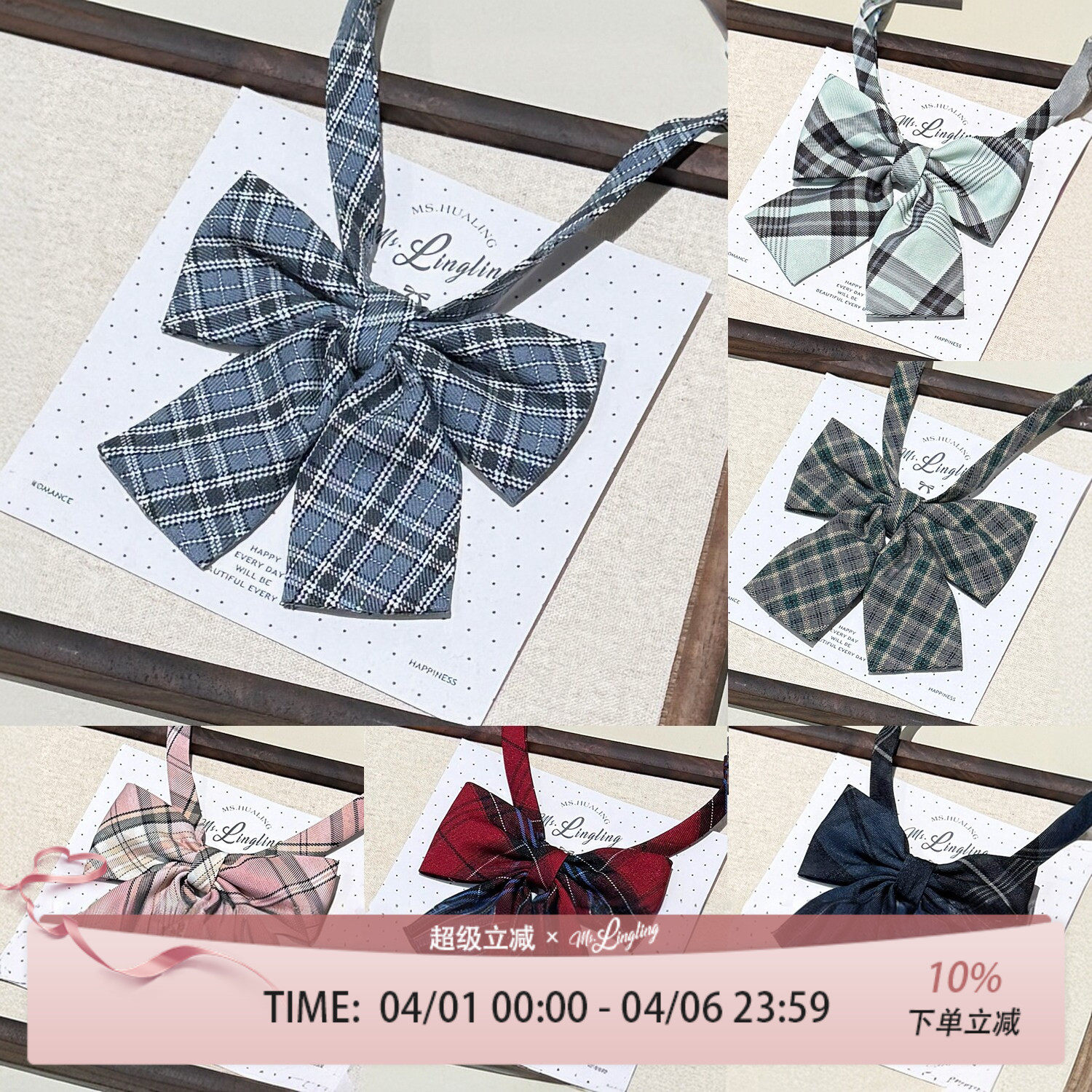 花铃太太格子裙同款平角领结JK纯色配件蝴蝶结日系女款服配饰小物