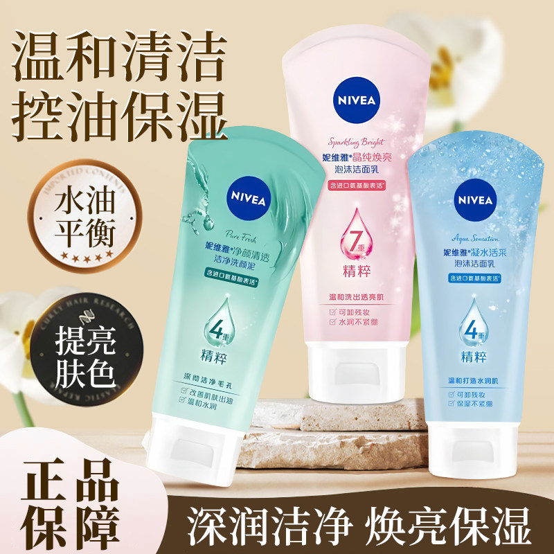 妮维雅女士洗面奶晶纯补水保湿氨基酸控油洁面乳深层清洁细致毛孔