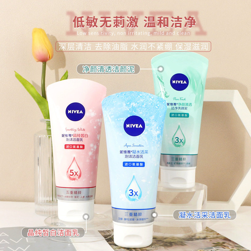 妮维雅女士洗面奶晶纯皙白洁面乳凝水活采洗面奶控油清爽补水保湿