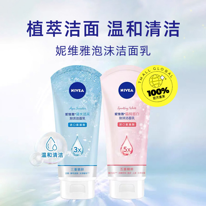妮维雅洗面奶氨基酸泡沫洁面乳女士男士亮白凝水活采控油晶纯正品