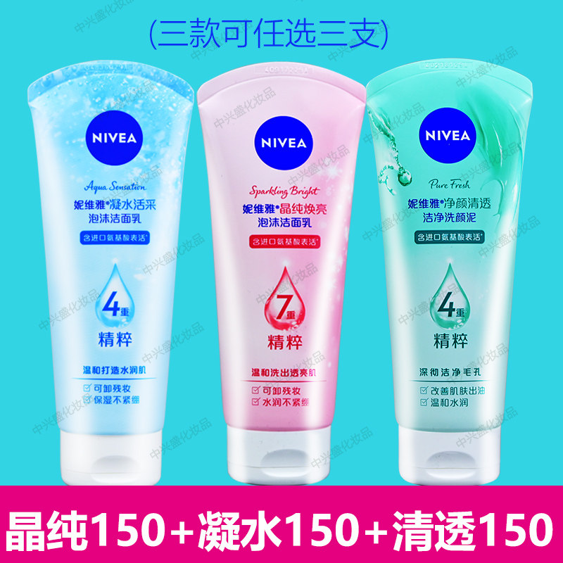妮维雅女士洗面奶150gX3支凝水晶纯焕亮泡沫洁面乳净颜清透洗颜泥