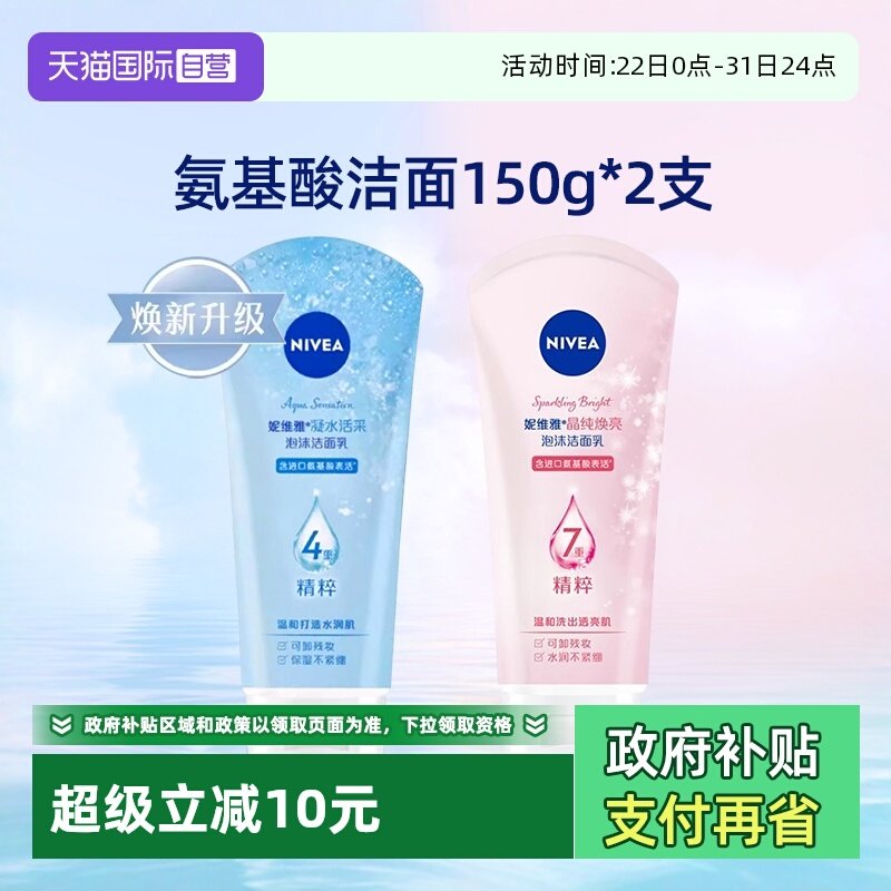 妮维雅女士洗面奶晶纯焕亮泡沫洁面乳150gX2加量装温和清洁洁面乳