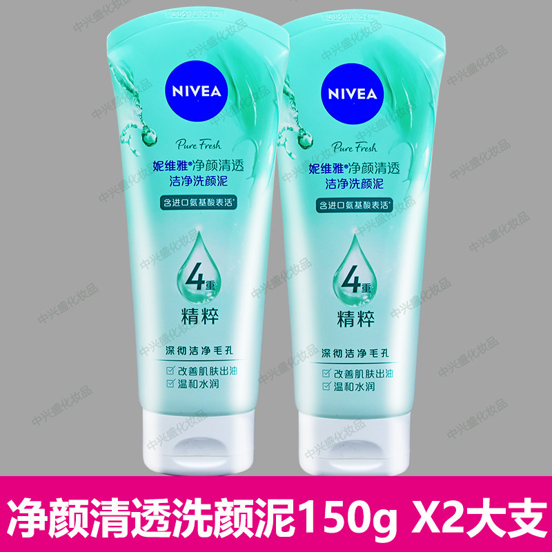 妮维雅女士洗面奶 净颜清透洗颜泥150g+150g清洁油脂和残妆洁面乳