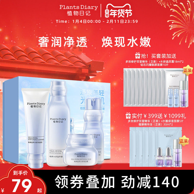 植物日记植酵晶萃水妍补水保湿护肤品套装水乳清洁面霜酵母人参水