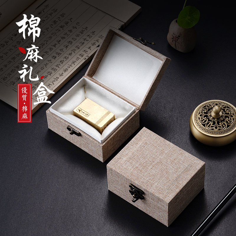 麻布印章锦盒定制首饰盒首饰盒瓷器包装礼品寿山石料印章礼品盒子