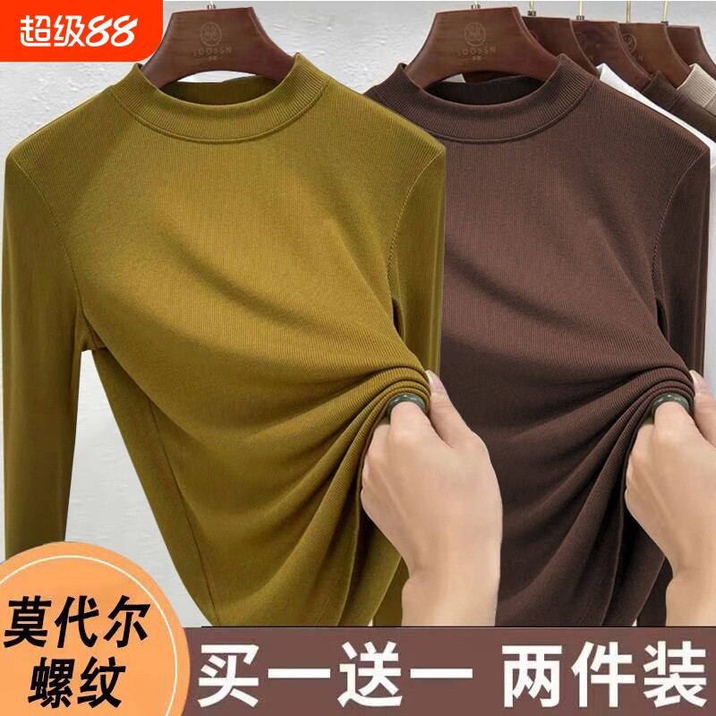 莫代尔打底衫女内搭半高领2026新款春秋显瘦长袖t恤女上衣服白色