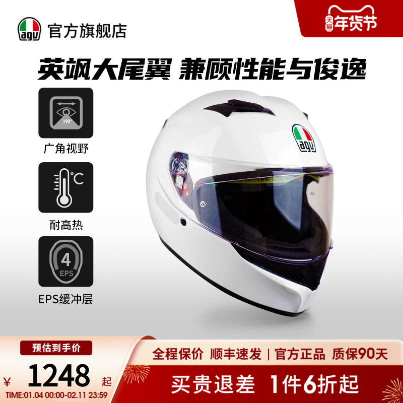 AGV全盔K3摩托车头盔男女机车跑盔双镜片大尾翼四季防雾官方旗舰