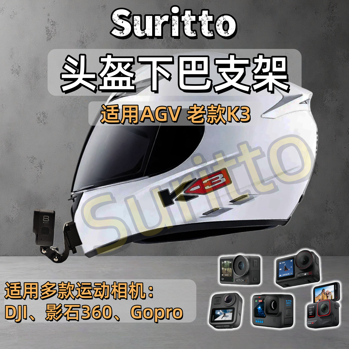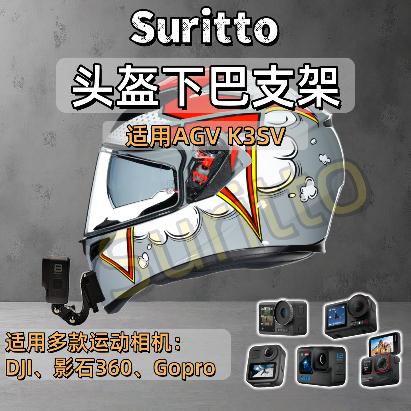 适用gopro头盔支架下巴固定运动相机配件专用定制agv K1/K5/K5S/K6/pista/k3/k3sv相机固定底座