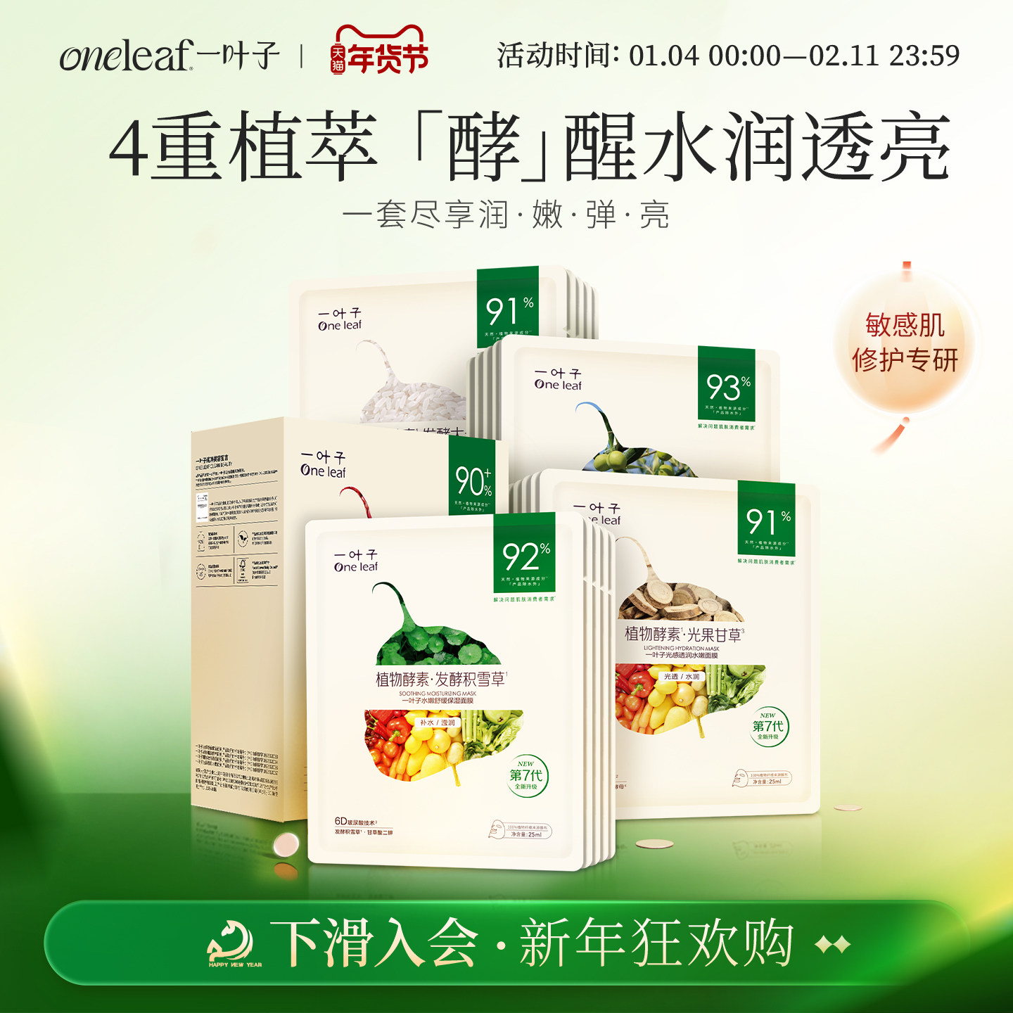 一叶子植物酵素水漾焕颜面膜组合补水面膜保湿润肤官方旗舰店正品