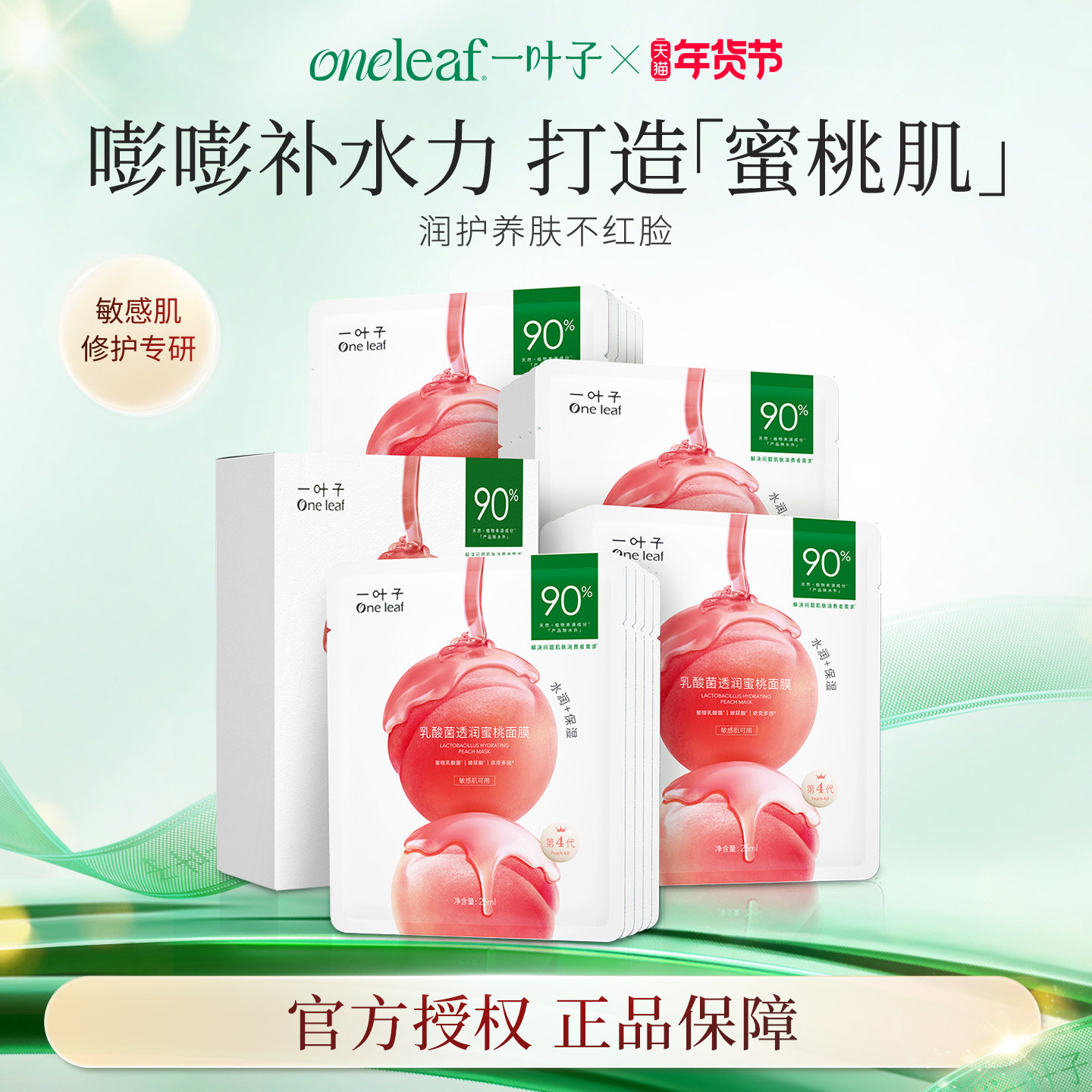 一叶子乳酸菌桃子补水面膜保湿修护泛红男女护肤品官方旗舰店正品