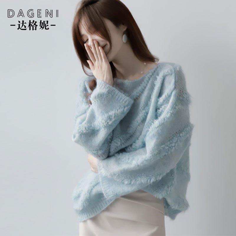复古设计感一字领针织毛衣女韩系千金名媛气质慵懒软糯温柔风上衣