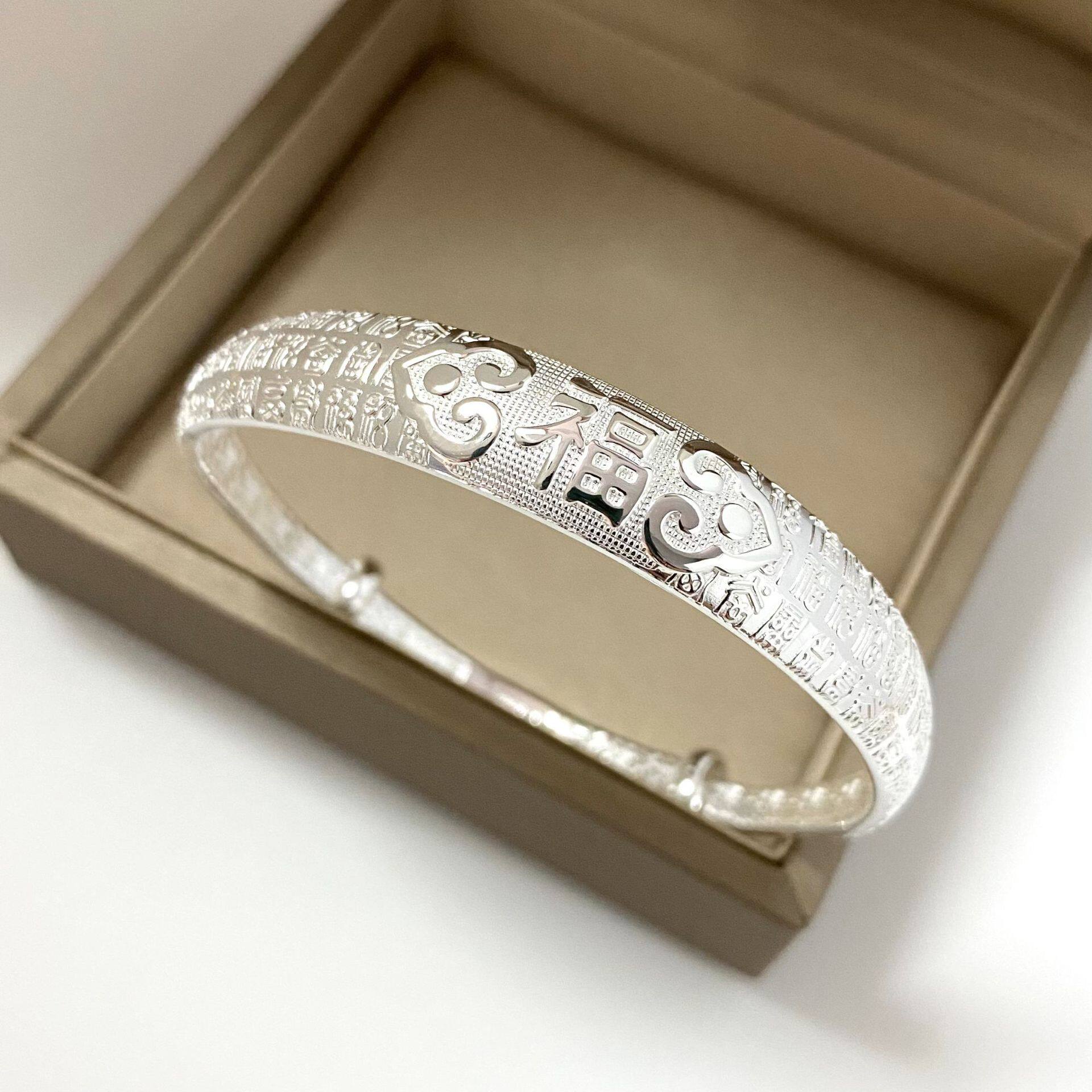 香港正生s999纯银简约福字手镯足银福气满满送长辈送妈妈节日礼物