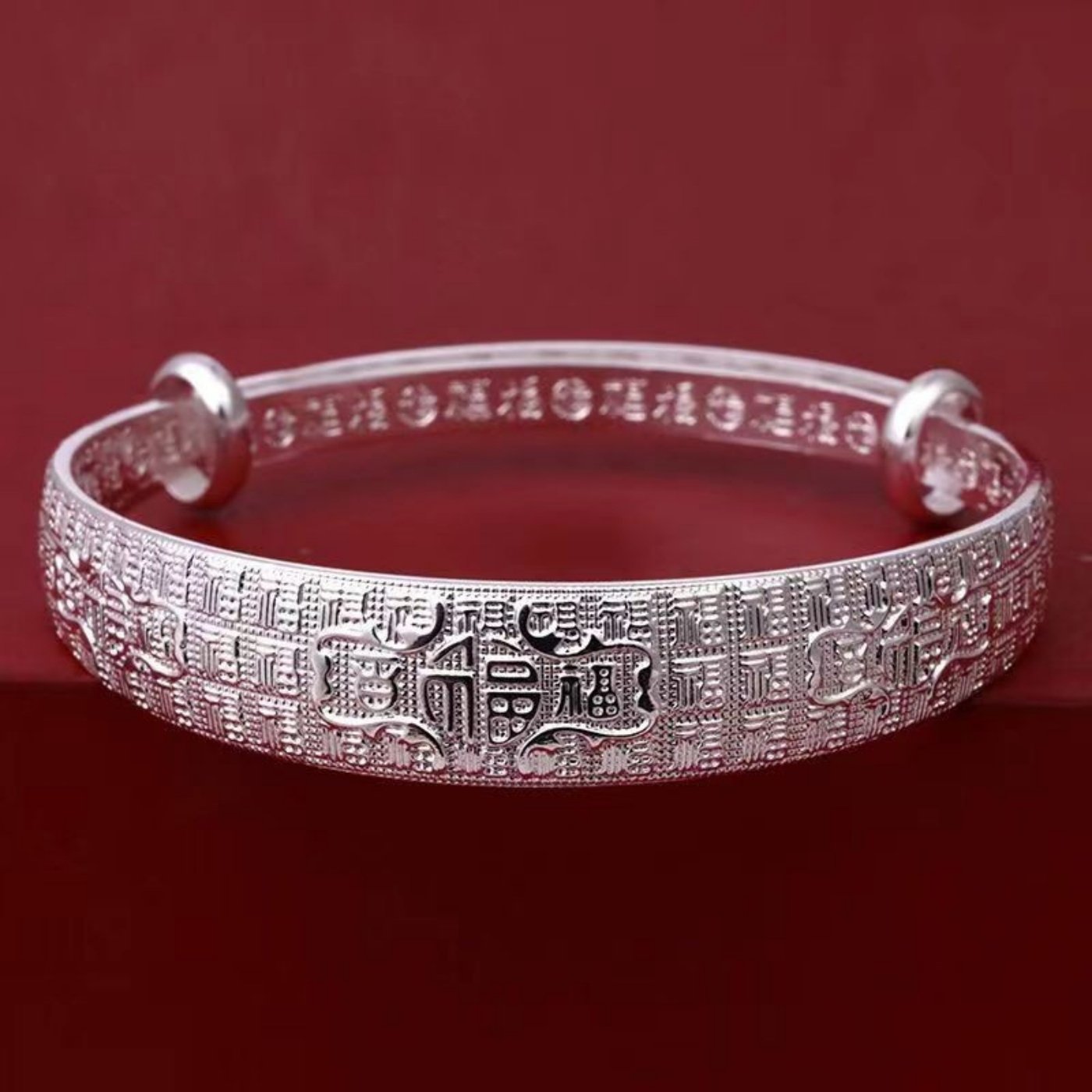 香港正生纯银999足银百福推拉手镯图腾福字银手环母亲节送妈妈礼