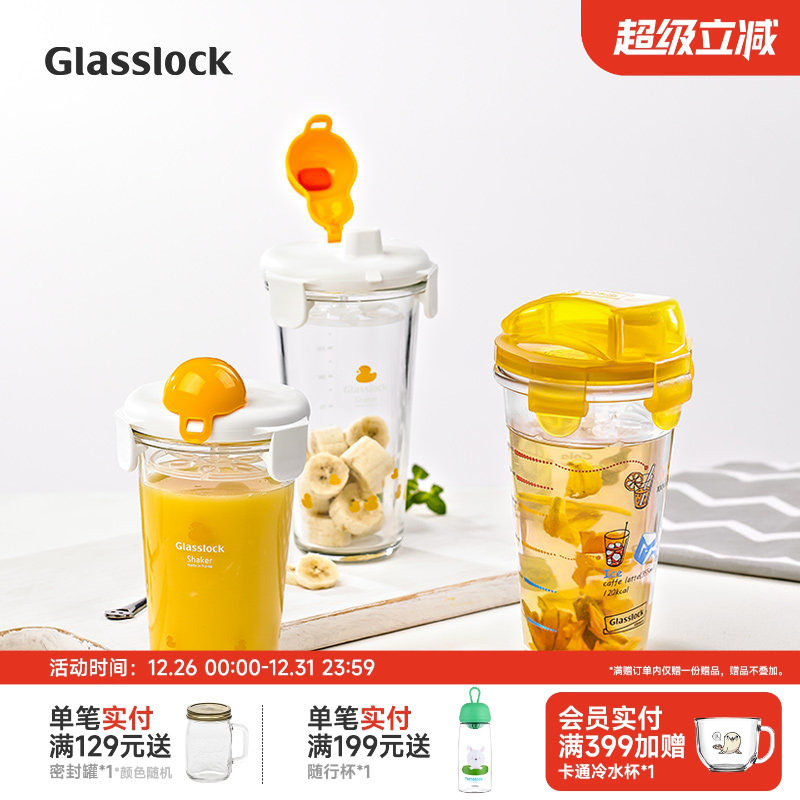 Glasslock盖朗玻璃杯子随手杯韩国清新可爱创意水杯便携茶杯女