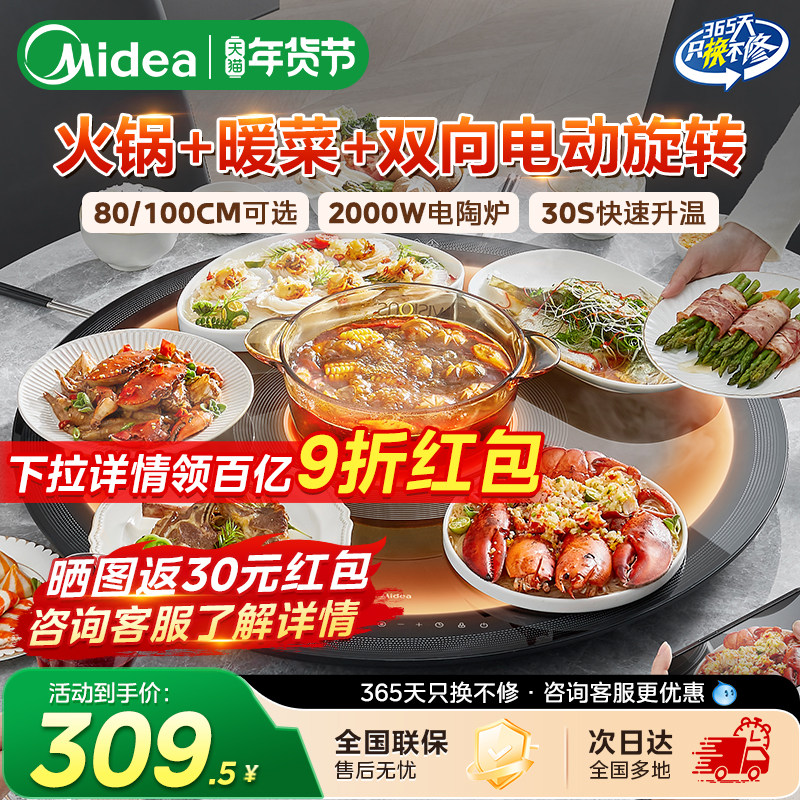美的暖菜板家用多功能带火锅电动旋转盘加热饭菜保温热菜25年新款