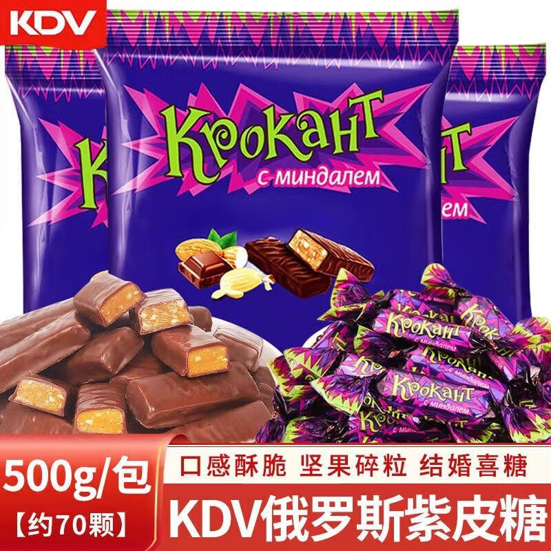 俄罗斯糖果KDV紫皮糖kpokaht进口杏仁夹心巧克力正品酥糖喜糖500g