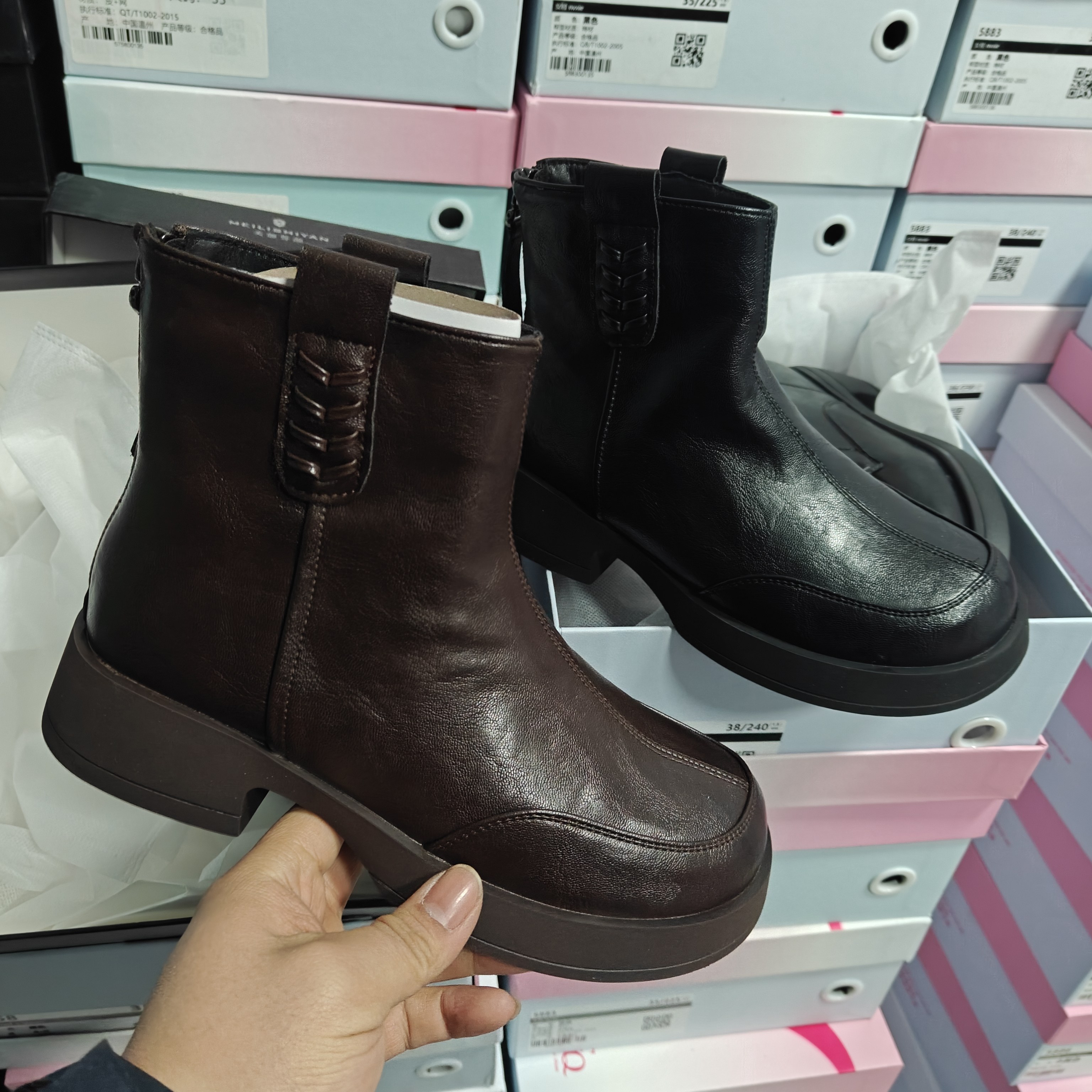 实体店女鞋2025冬季加绒保暖方头短靴马丁靴切尔西靴美丽誓言0905