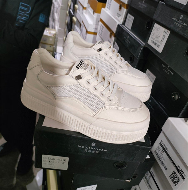 美丽誓言女鞋2024春夏厚底真皮单网透气休闲运动板鞋小白鞋63039