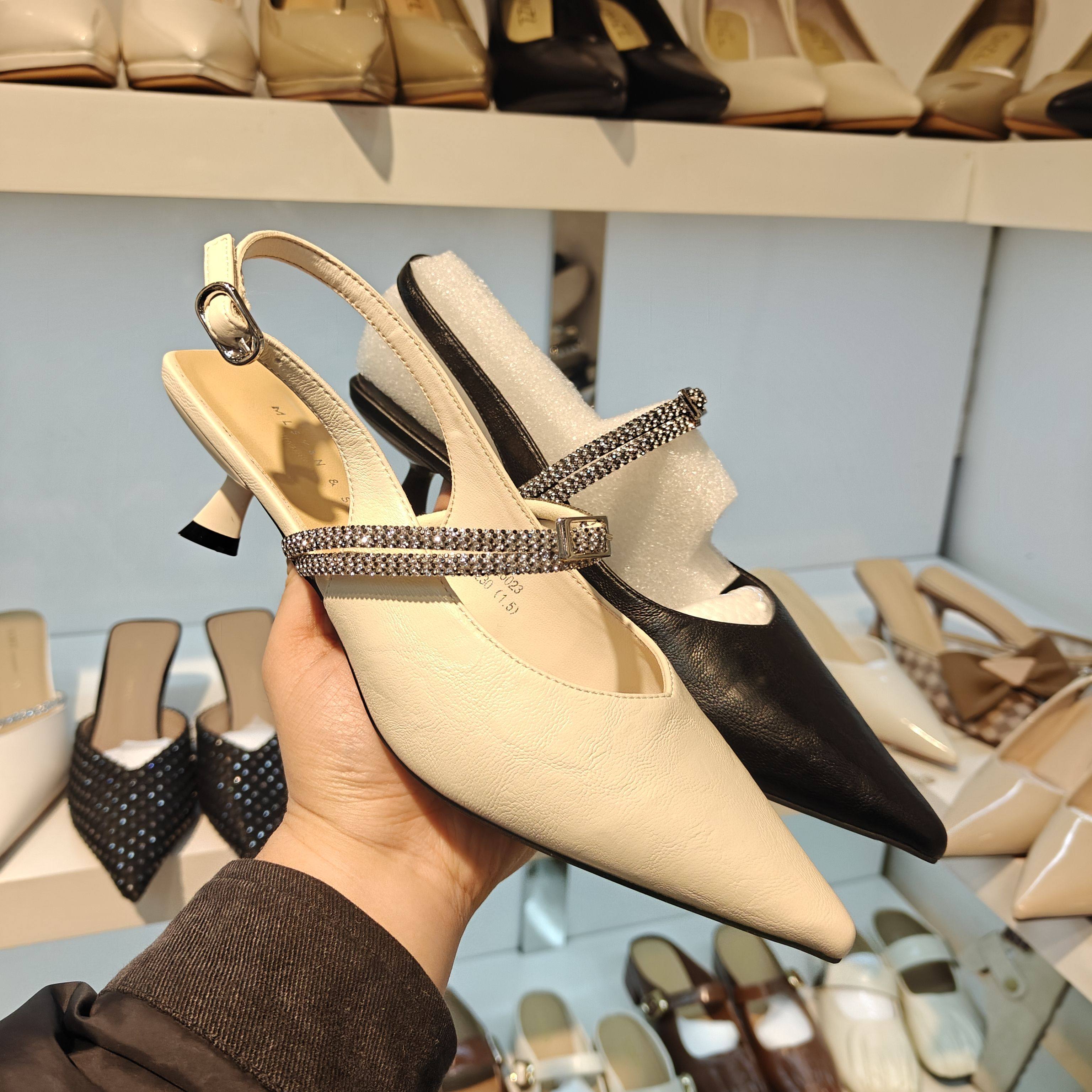 美丽誓言女鞋2025春夏新款仙女风一字带小众水钻包头凉鞋25023
