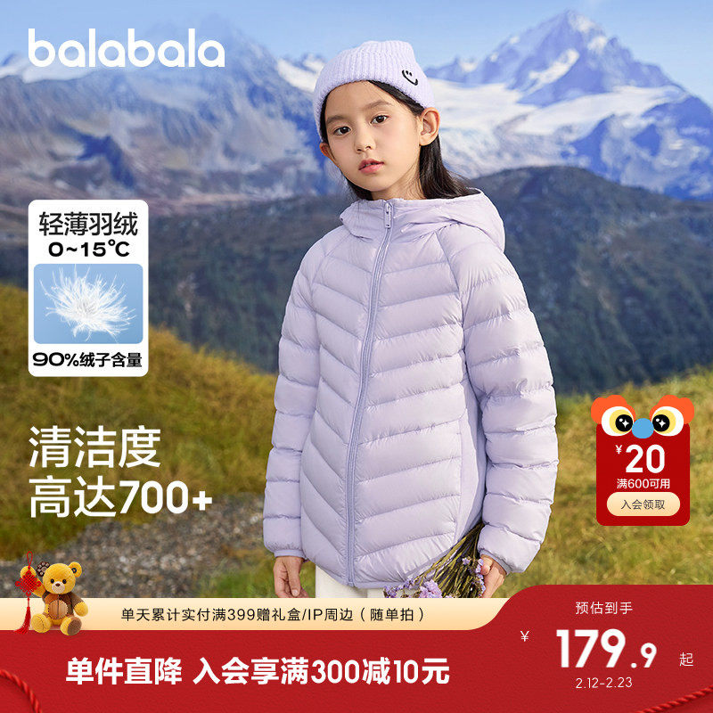 【balaOne】巴拉巴拉童装儿童轻薄羽绒服男女童2025新款冬季三防