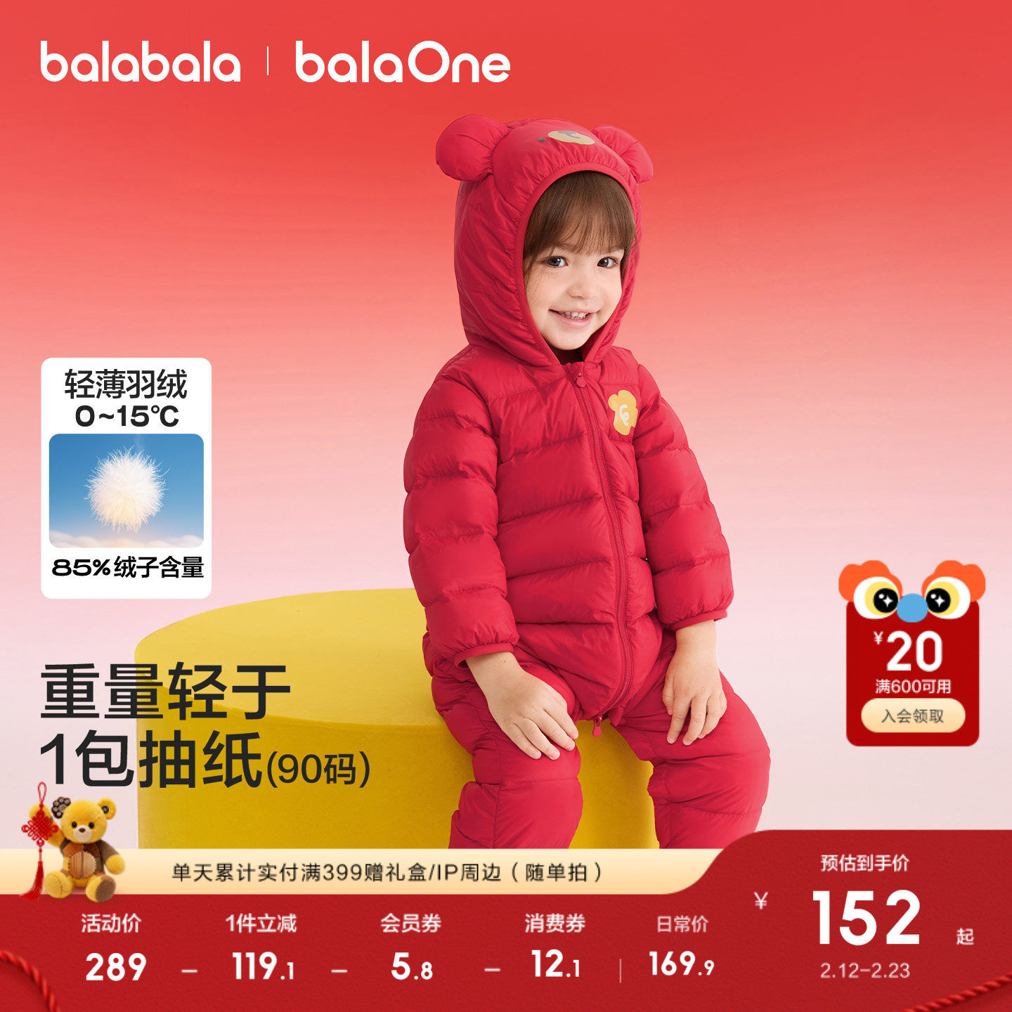 巴拉巴拉儿童轻薄羽绒服男女童冬季连体衣2025新款造型红色拜年服
