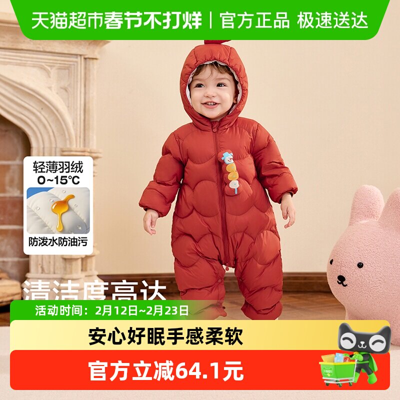 巴拉巴拉儿童轻薄羽绒服男女童婴儿连体衣2025宝宝冬装拜年服红色