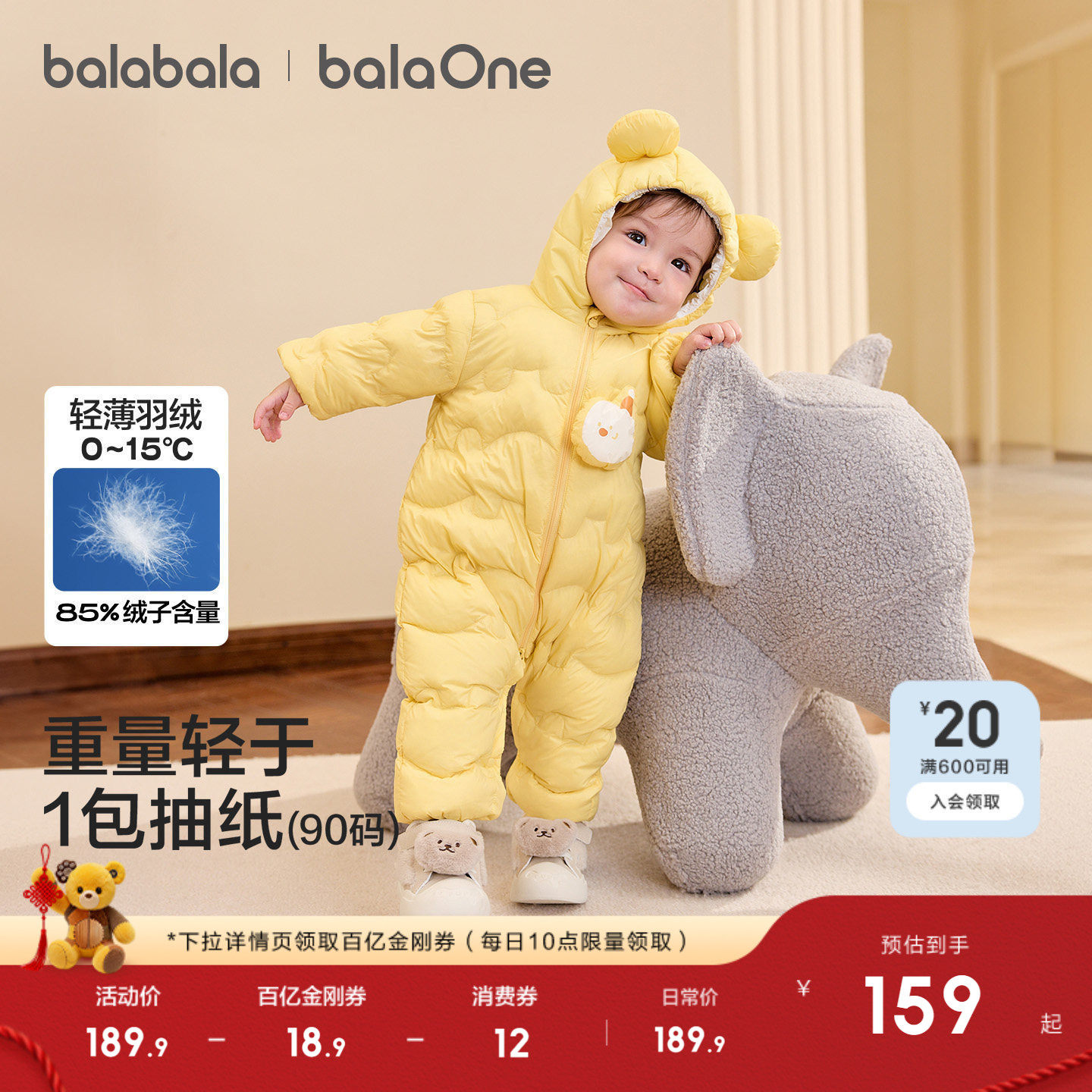 巴拉巴拉儿童轻薄羽绒服男女童冬季连体衣2025新款造型可爱趣味萌