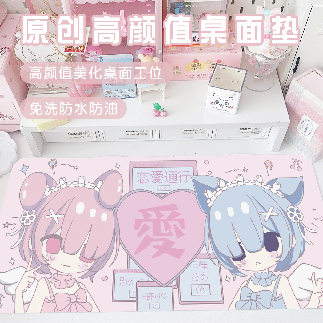 原创雷姆拉姆可爱鼠标垫超大号女生高颜值办公室皮革键盘电脑桌垫