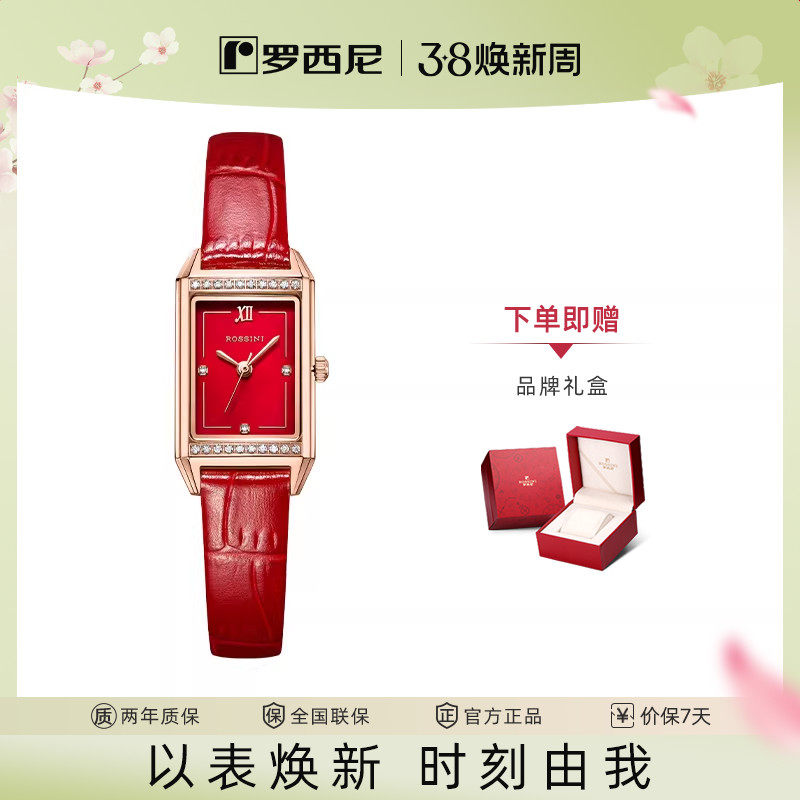 【送礼推荐】罗西尼本命年手表女红色方形石英表正品女表学生腕表