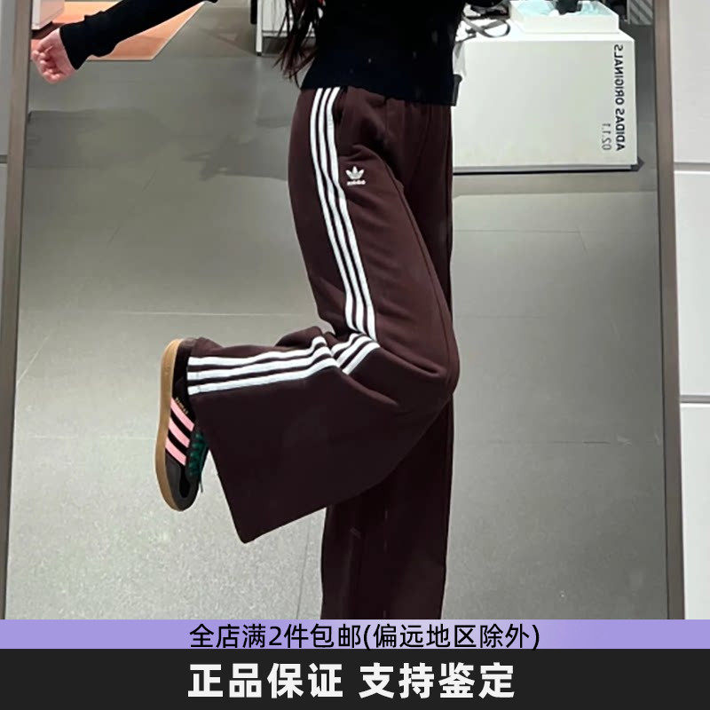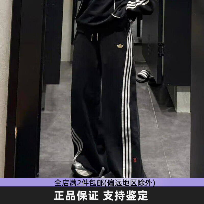 adidas阿迪达斯三叶草女子阔腿裤宋雨琦同款三条纹直筒长裤扭扭裤