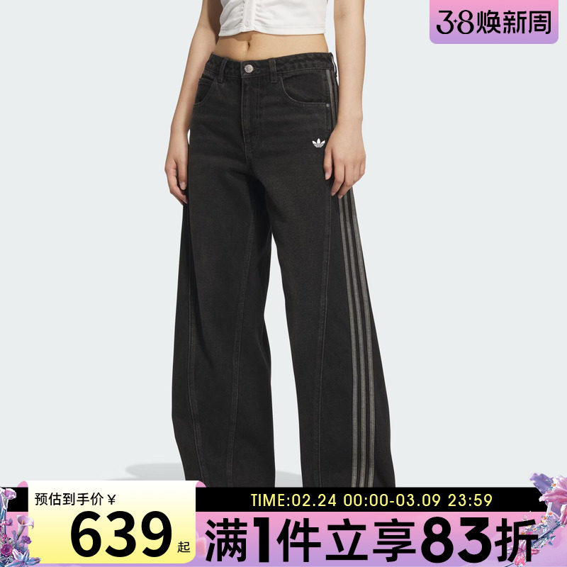 adidas阿迪达斯三叶草女子ADIDENIMW阔腿直筒裤运动长裤JX6865