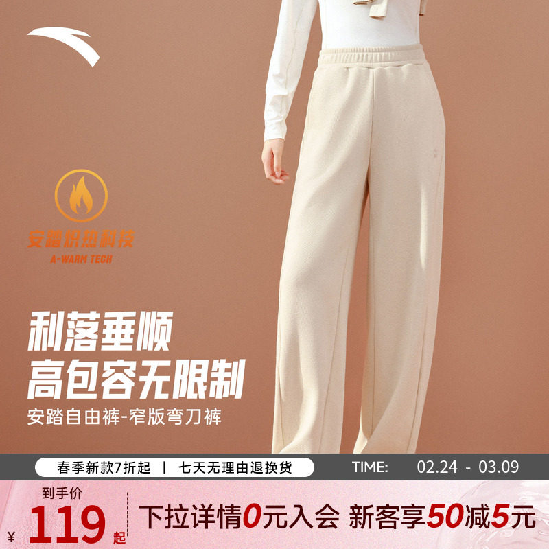 安踏弯刀裤窄版自由裤女休闲阔腿裤香蕉裤秋冬加绒直筒运动裤卫裤