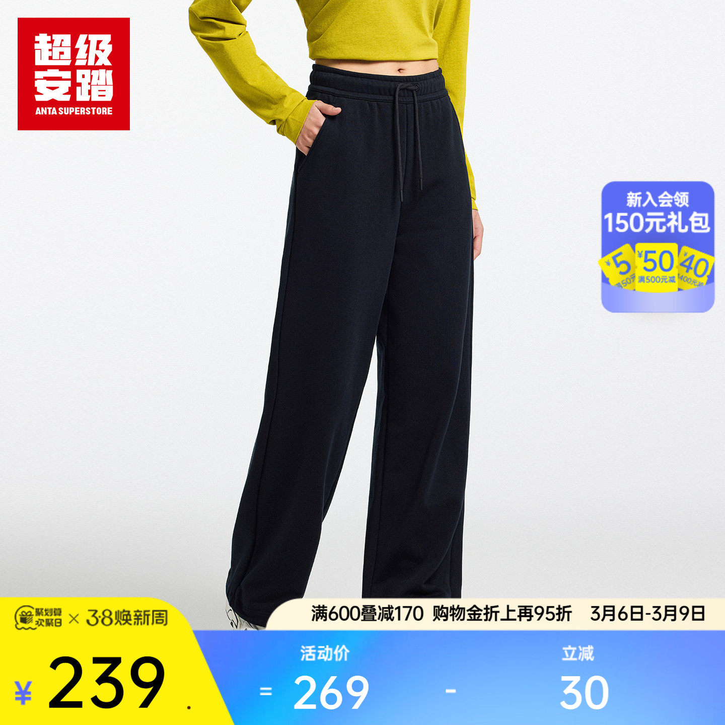 超级安踏女子阔腿裤2026春新针织裤修身显瘦休闲裤长裤162618301U