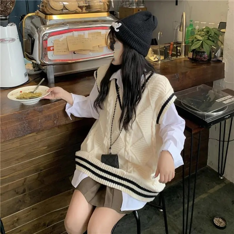 春季学院风两件套毛衣马甲针织背心女学生韩版宽松百搭+单件衬衫