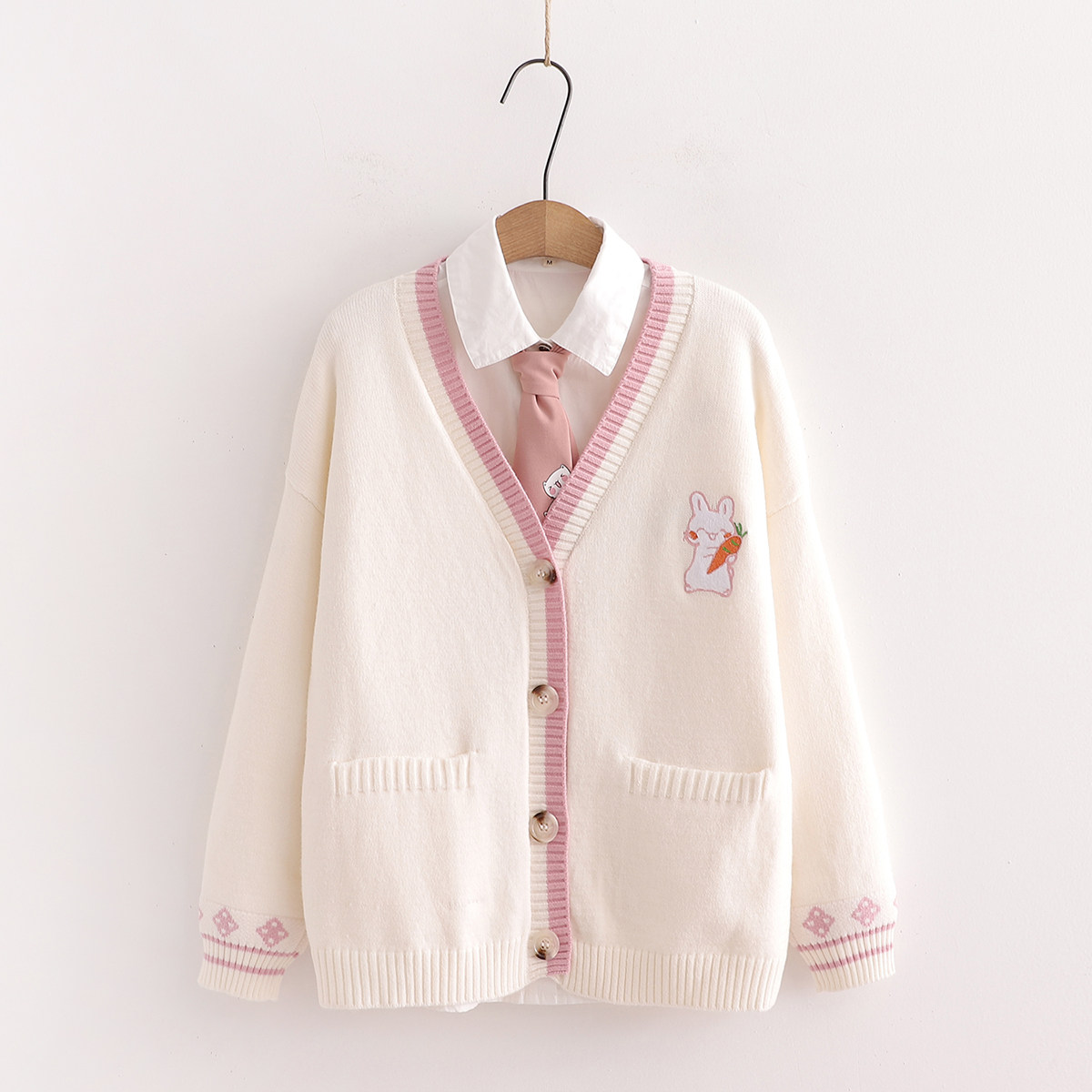 jk毛衣外套秋冬新款学院风可爱刺绣毛衣学生韩版宽松针织衫外套潮