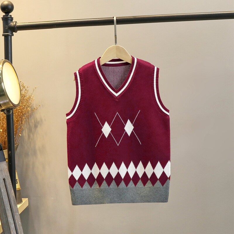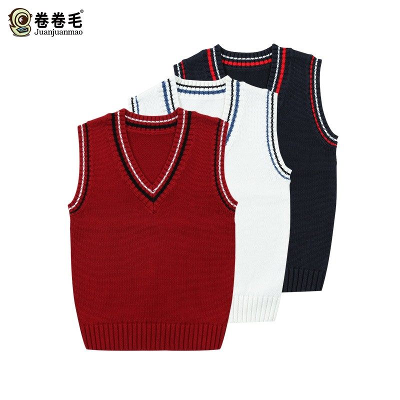 中大童毛衣马甲男童女童学院风春秋坎肩学生针织马夹儿童校服背心