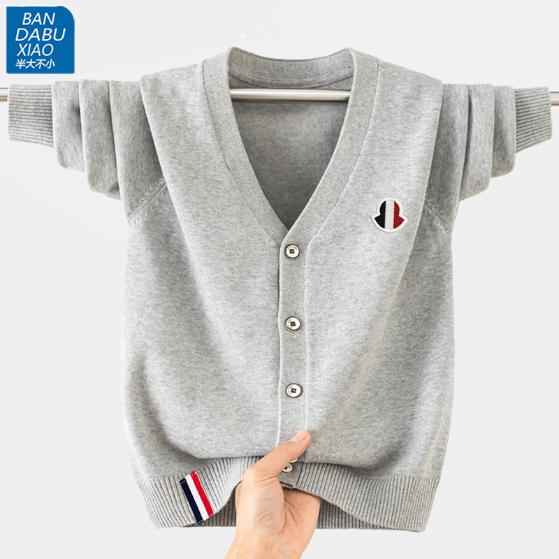 中大童纯棉针织开衫男春季青少年学生男女孩子学院风薄款毛衣外套