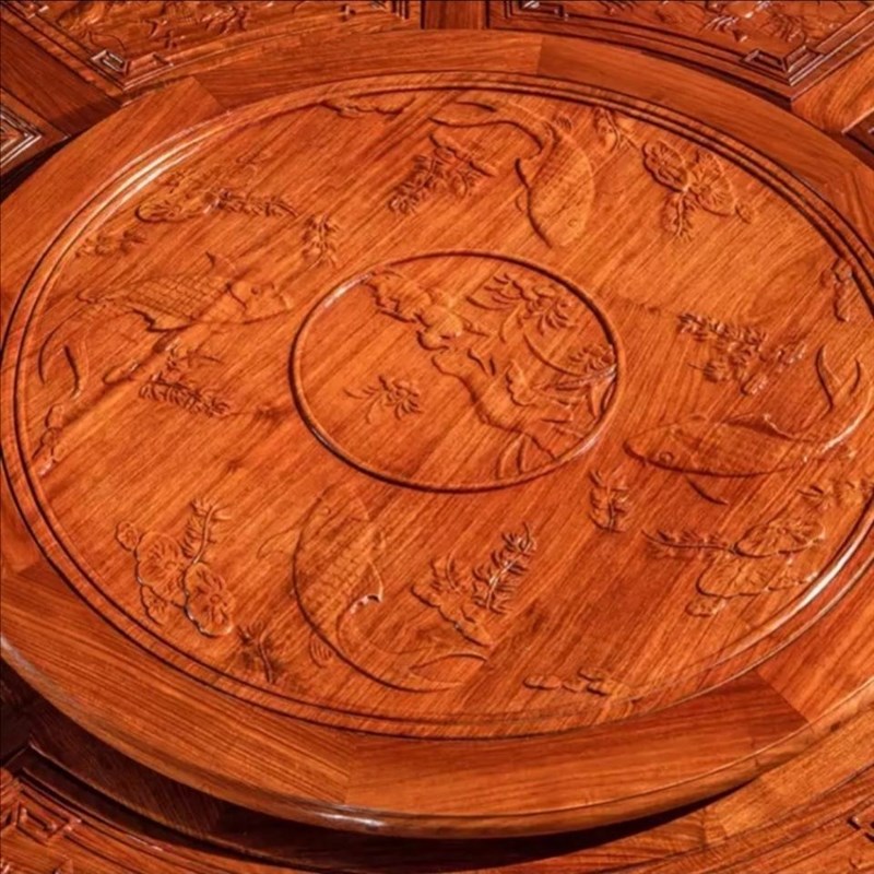 红木餐桌圆桌1.3老挝红酸枝巴里黄檀花枝国色天香中式饭桌雕花