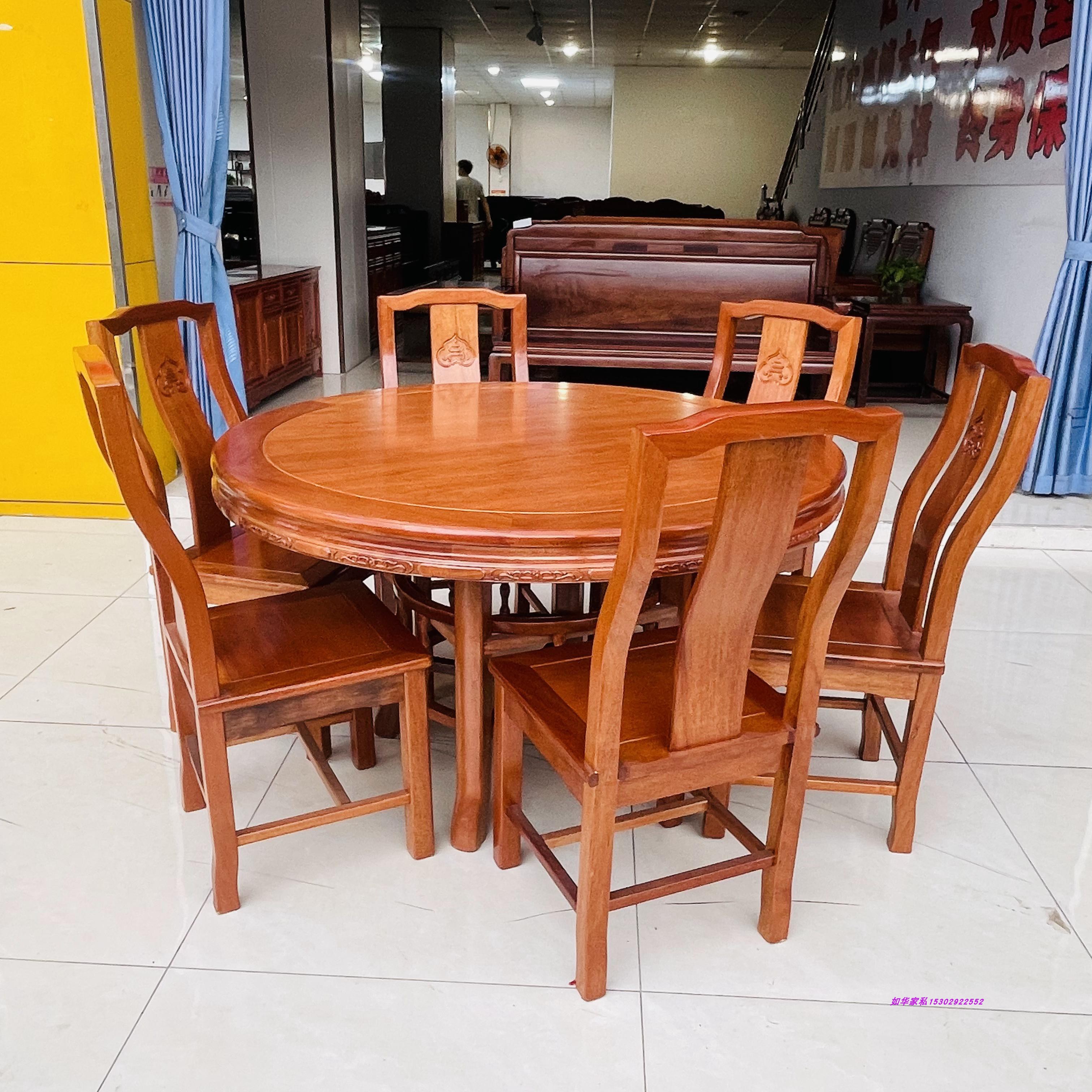 大果紫檀客厅餐桌椅缅甸花梨木圆桌圆台餐厅饭桌椅全实木红木家具