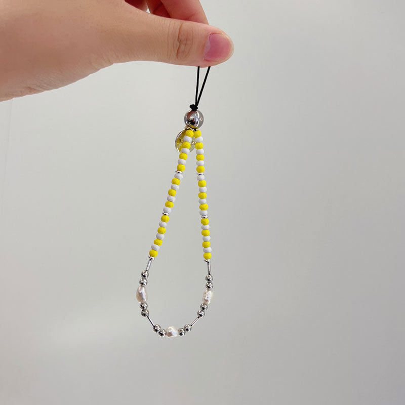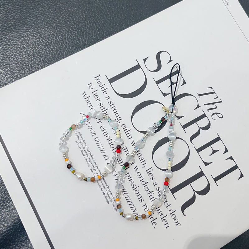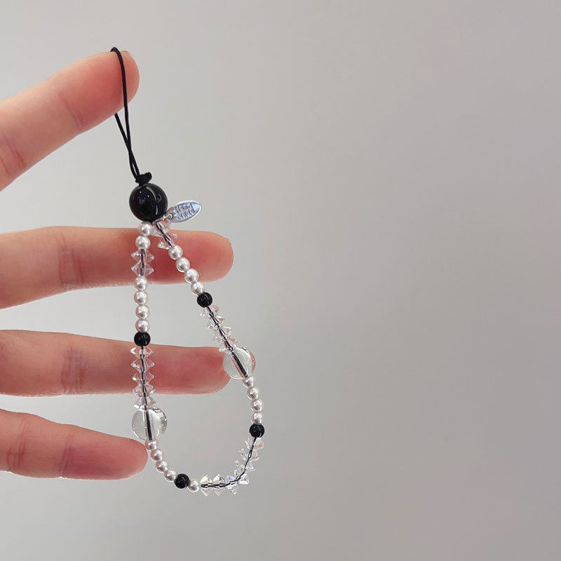 新款黑白手机链不规则原创高级感水晶米珠子迷你链条挂饰防丢挂绳