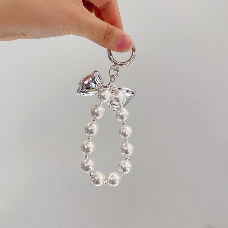 韩国东大门手机链nyunyu同款汽车钥匙扣珍珠金属蝴蝶结ins包包链