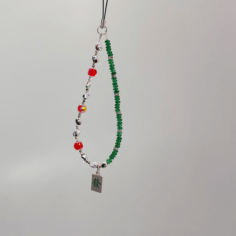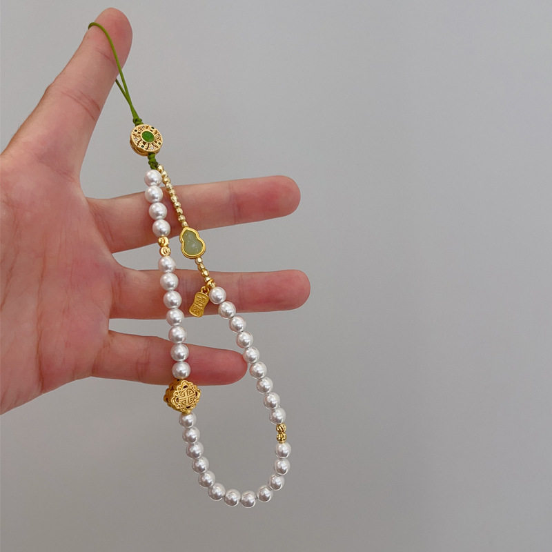 小众设计贝珠手机链钥匙扣挂件古风招财纳福手腕挂绳绿色高级文艺