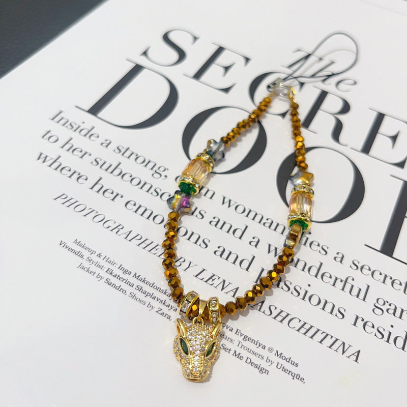 高级轻奢水晶黄色招财手机链满钻豹头小众设计包包车钥匙挂件挂绳