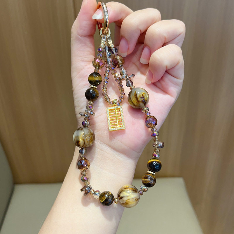 秋冬新款棕色系算盘发财手机链高级感水晶百搭饰品挂件钥匙扣包挂