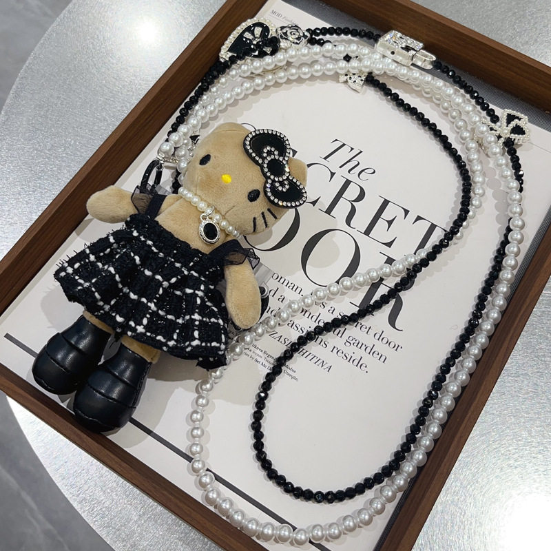 小香风名媛KT长腿手机斜挎背夹重工合金珠子珍珠串珠可爱饰品挂件