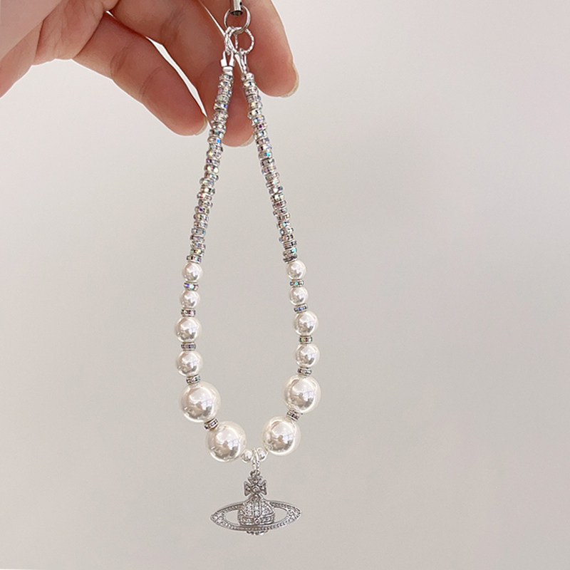 抖音爆款水晶手机链原创土星西太后大珍珠挂绳手机壳链条挂件挂饰