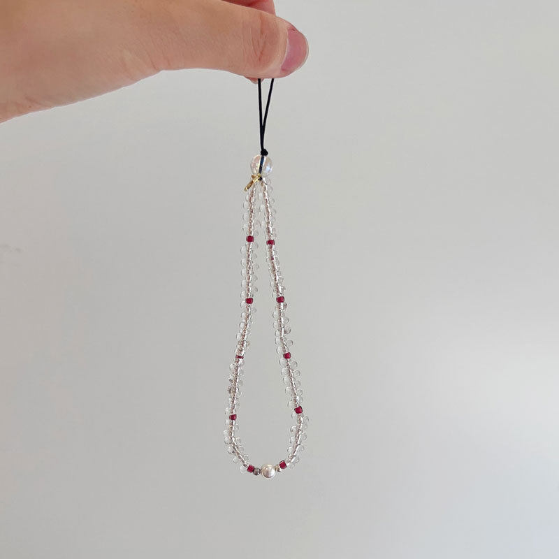 手机链女2024年新款小红书星期四同款进口水滴透明米珠迷你链挂绳