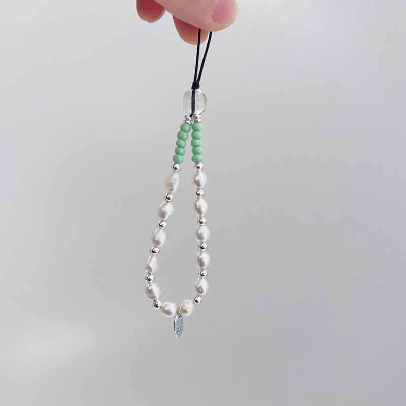 韩系手机链设计师款极简珍珠水晶天然石迷你挂件装饰品短链条挂饰