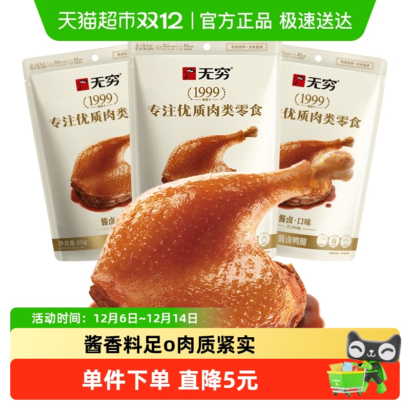 无穷酱卤大鸭腿85g*3袋 微辣卤味熟食办公室休闲小吃网红零食特产